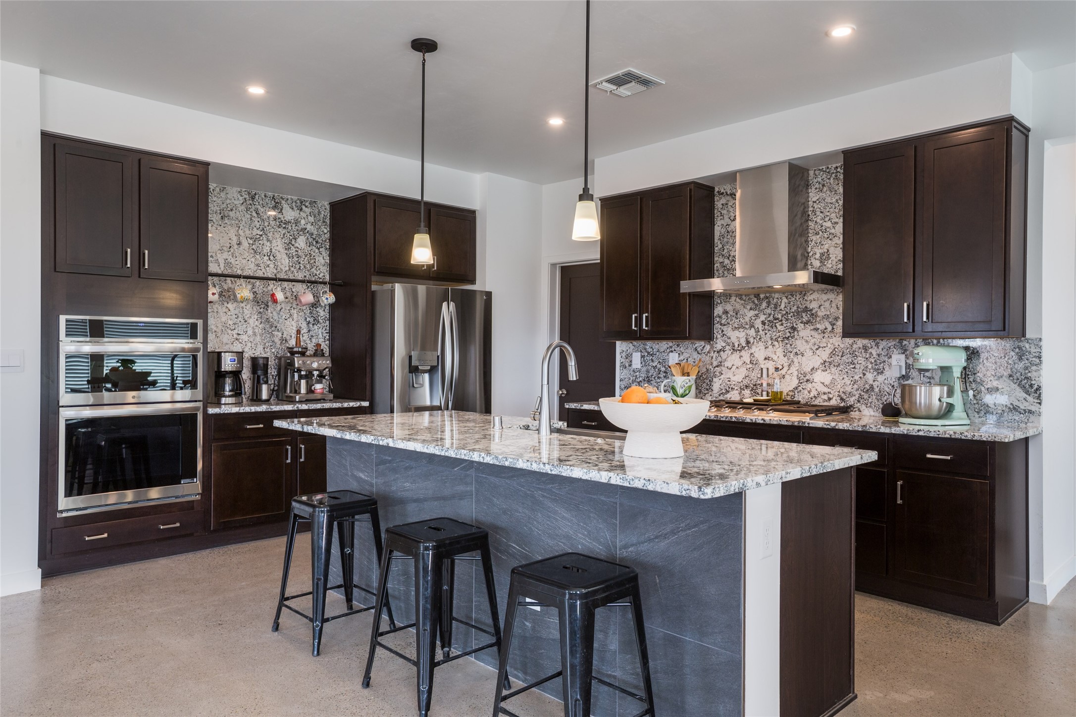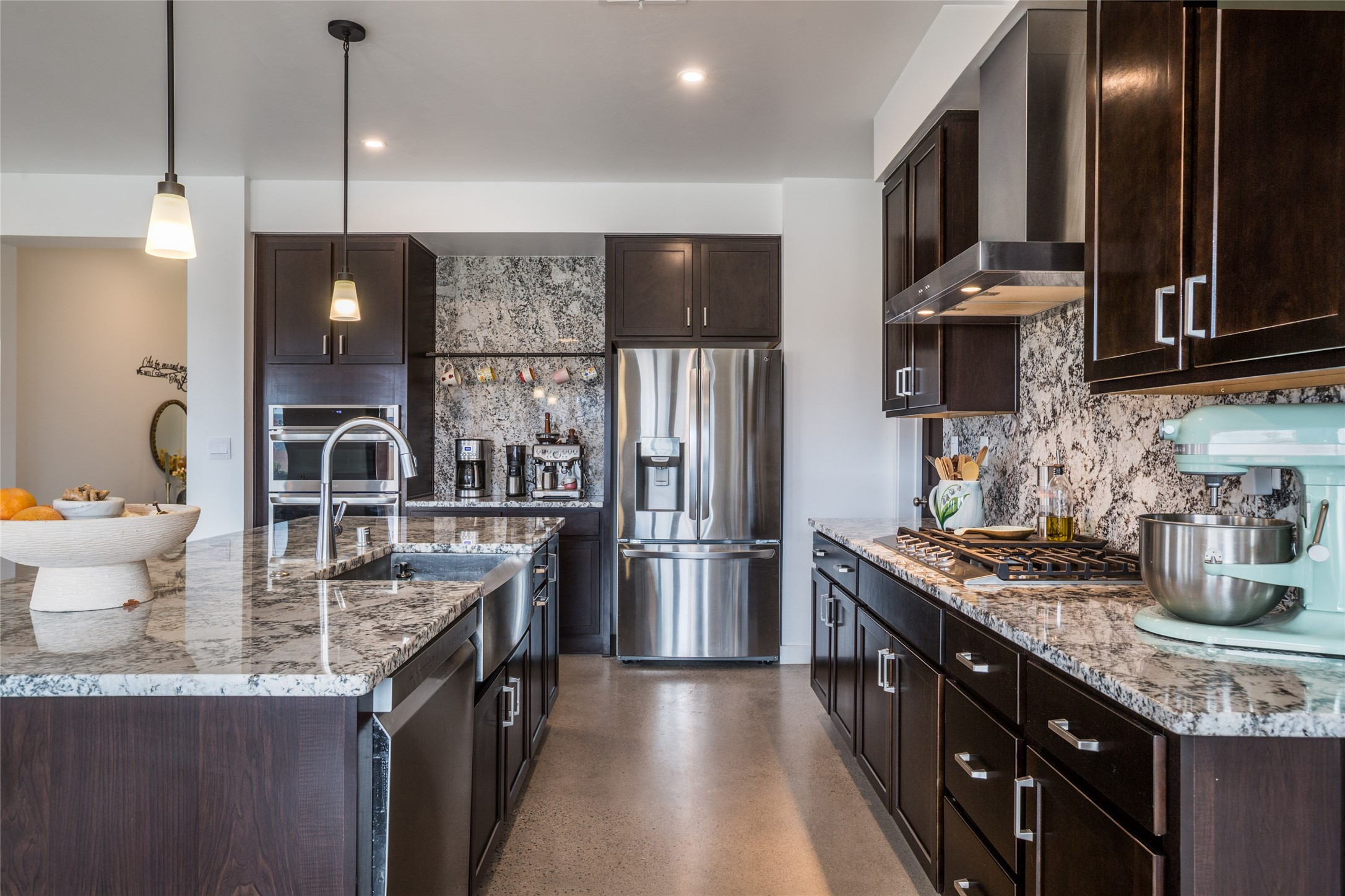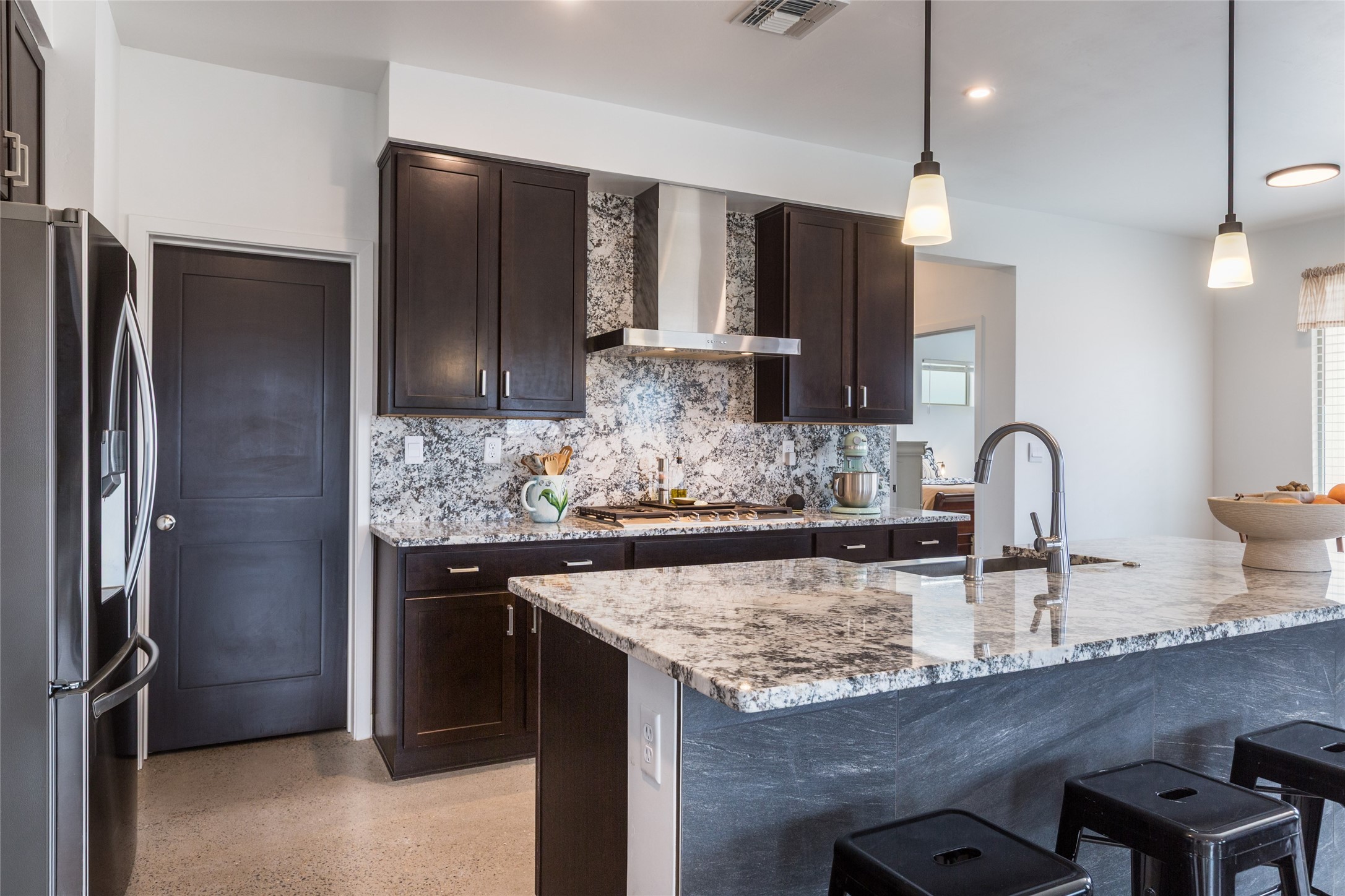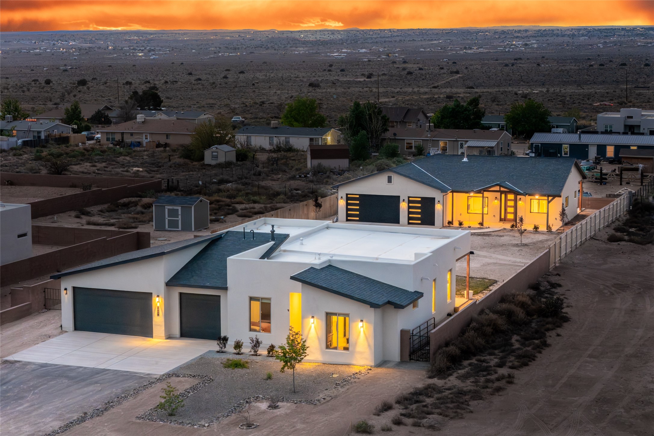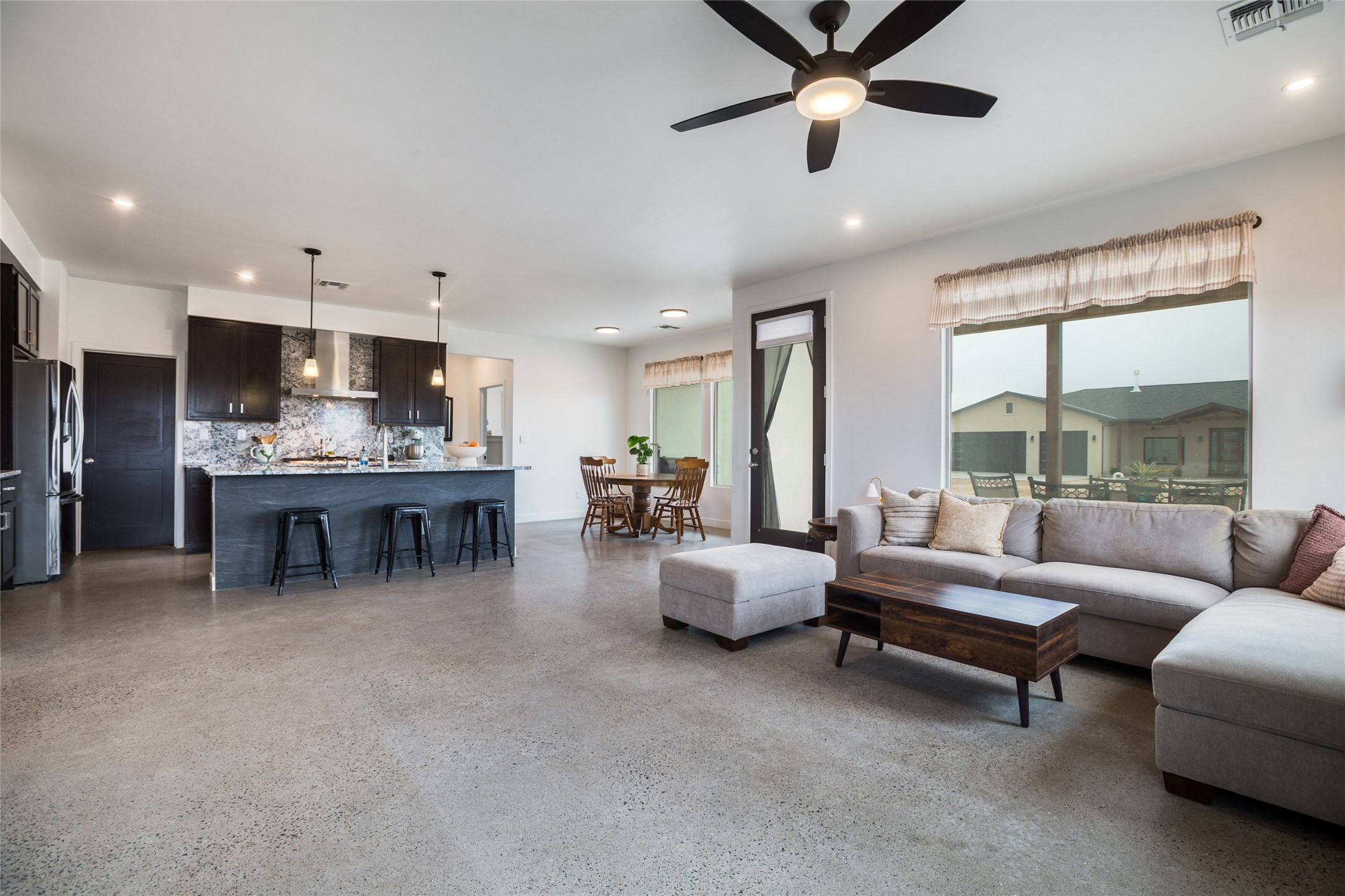 Why buy one house when you can buy two, plus have room to garage up to 8 cars on one generous acre lot with no HOA or PID? The Main Home, with a 3 car garage, was finished in late 2024, and not occupied until 2025. It offers a bright, open layout with polished concrete flooring throughout for a sleek, low-maintenance finish. The kitchen is designed for everyday living AND entertaining - with solid wood cabinetry, gas range, large pantry, and abundant storage. The primary suite is spacious and there are 3 separate additional bedrooms to customize the way you live. The Casita is brand new, never lived in, and the garage has room for 5 cars, or 3 and a workshop, gym, or just ROOM, and boasts a bathroom fit for a Primary Suite! Designed and built for the current owners, a life change means you will get to enjoy all the many features they incorporated! This is the multi-gen Accessory Dwelling Unit (ADU) all your family member's friends will be jealous of, or your guests may never want to leave! It offers its own private living experience with 1 bedroom and 2 baths, a thoughtfully designed kitchen with Black Mist Honed Granite on a large island, a pot filler, beautiful tile backsplash, generous cabinetry, and the option for gas or electric range and dryer. The inviting living space features a fireplace with blower for extra warmth and ambiance. Additional casita highlights include a covered front porch, insulated garage doors, security cameras, a full gutter system, gas BBQ stub out, and RV hookup (including sanitary dump set up), all adding as much comfort as functionality in a truly one-of-a-kind compound in which to live, love work and play!