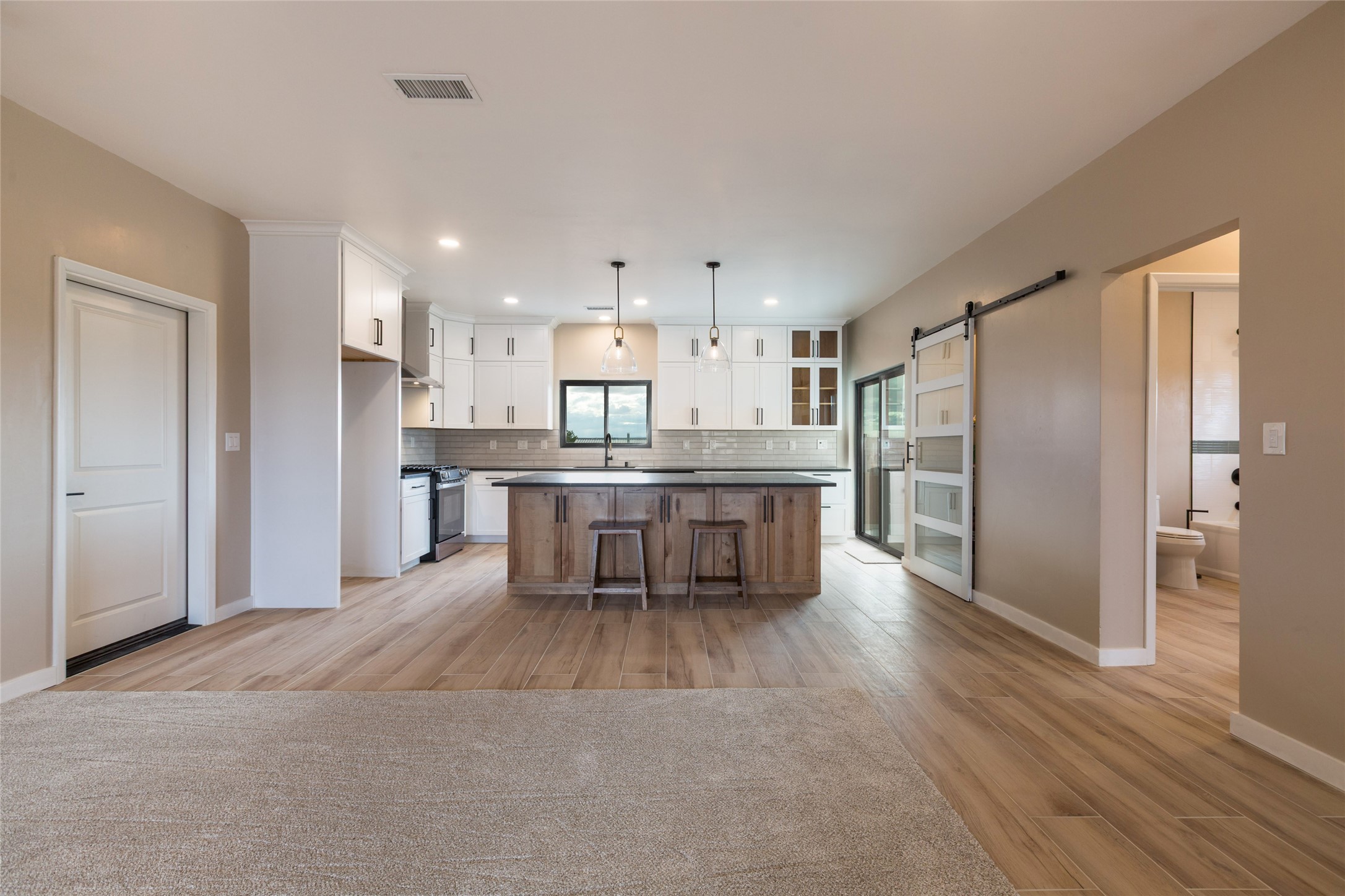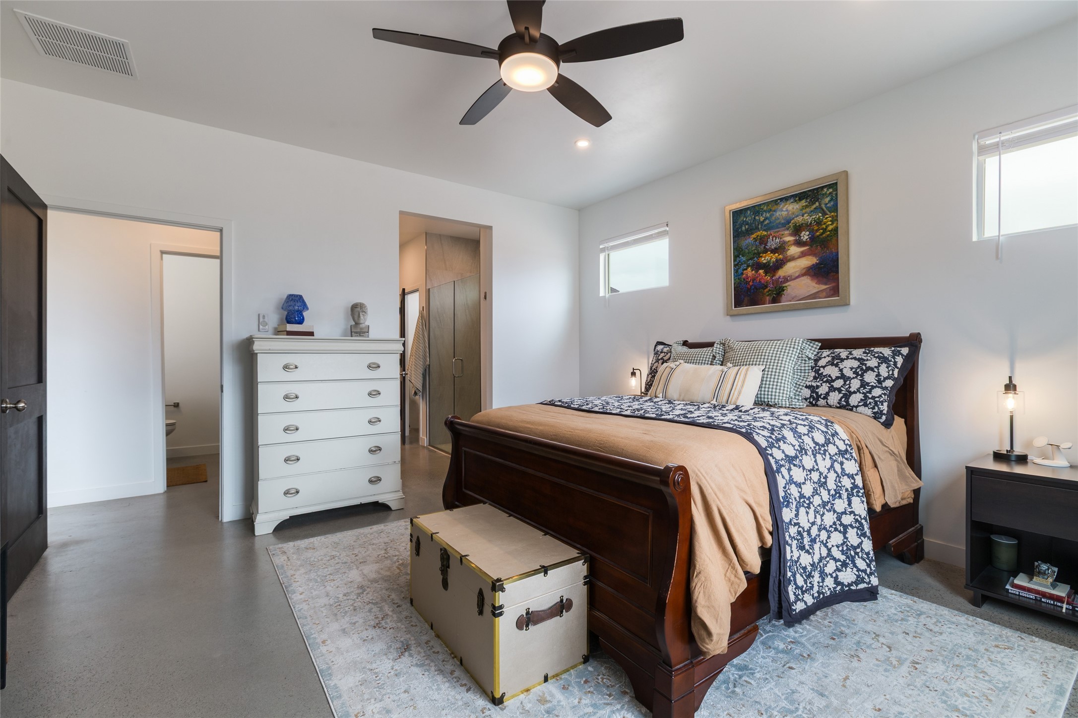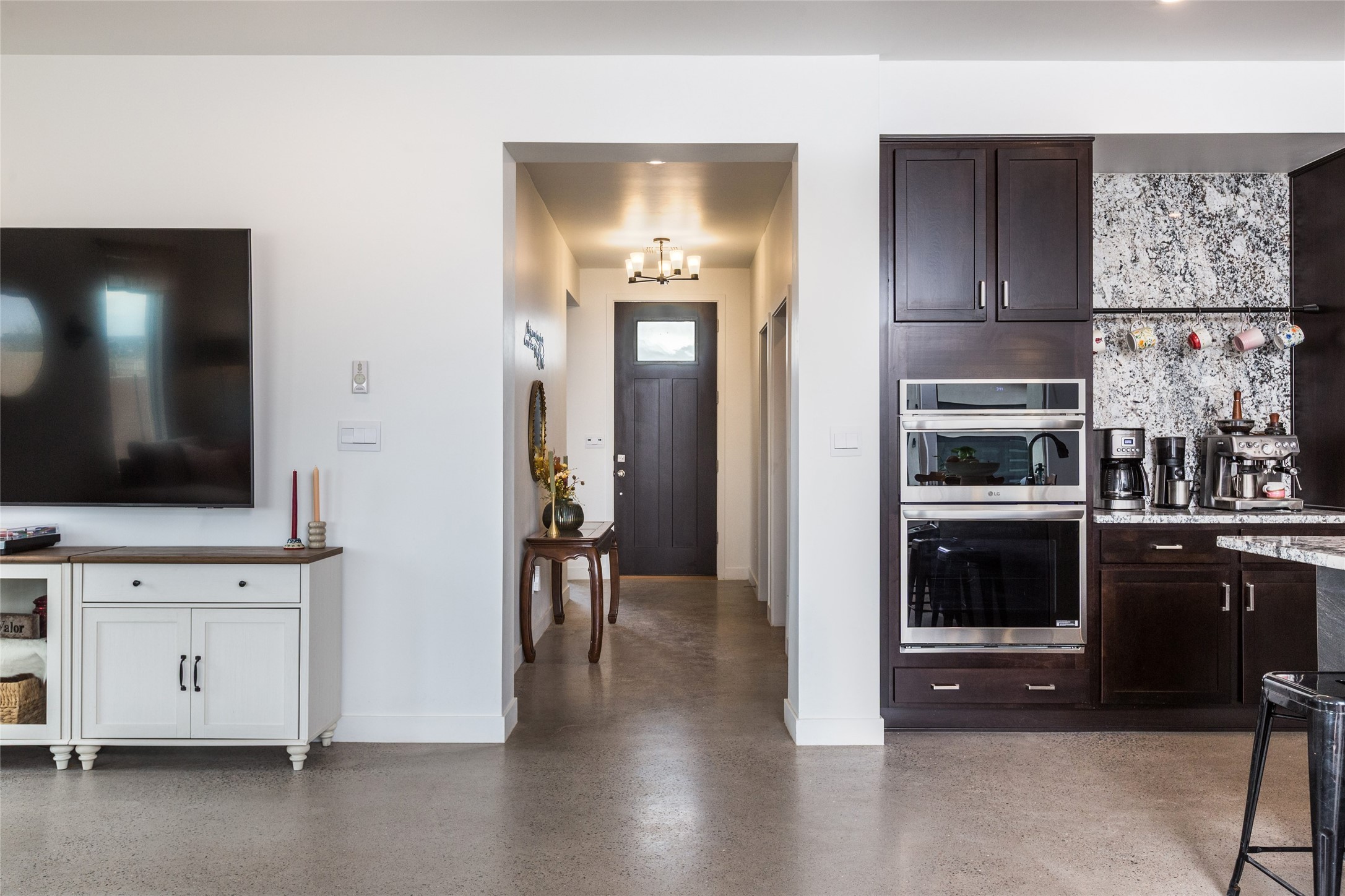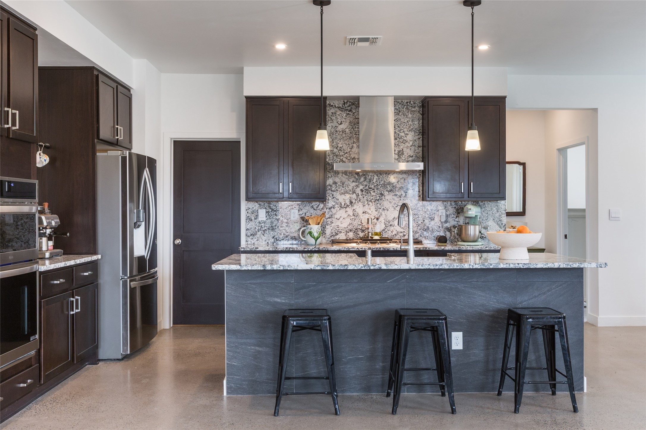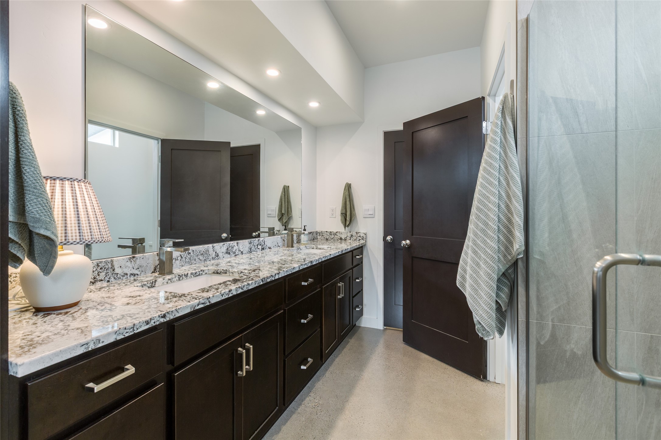 Why buy one house when you can buy two, plus have room to garage up to 8 cars on one generous acre lot with no HOA or PID? The Main Home, with a 3 car garage, was finished in late 2024, and not occupied until 2025. It offers a bright, open layout with polished concrete flooring throughout for a sleek, low-maintenance finish. The kitchen is designed for everyday living AND entertaining - with solid wood cabinetry, gas range, large pantry, and abundant storage. The primary suite is spacious and there are 3 separate additional bedrooms to customize the way you live. The Casita is brand new, never lived in, and the garage has room for 5 cars, or 3 and a workshop, gym, or just ROOM, and boasts a bathroom fit for a Primary Suite! Designed and built for the current owners, a life change means you will get to enjoy all the many features they incorporated! This is the multi-gen Accessory Dwelling Unit (ADU) all your family member's friends will be jealous of, or your guests may never want to leave! It offers its own private living experience with 1 bedroom and 2 baths, a thoughtfully designed kitchen with Black Mist Honed Granite on a large island, a pot filler, beautiful tile backsplash, generous cabinetry, and the option for gas or electric range and dryer. The inviting living space features a fireplace with blower for extra warmth and ambiance. Additional casita highlights include a covered front porch, insulated garage doors, security cameras, a full gutter system, gas BBQ stub out, and RV hookup (including sanitary dump set up), all adding as much comfort as functionality in a truly one-of-a-kind compound in which to live, love work and play!