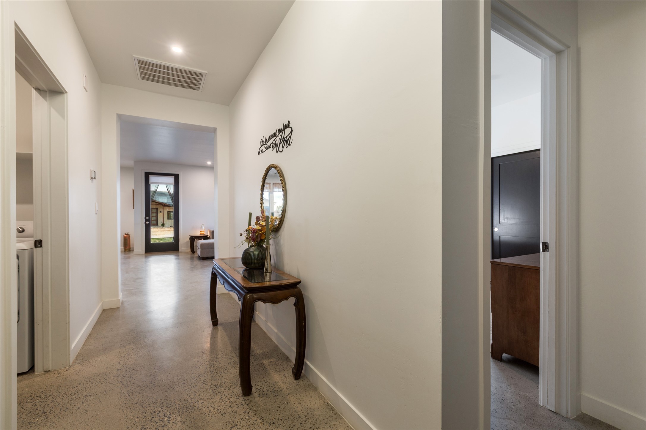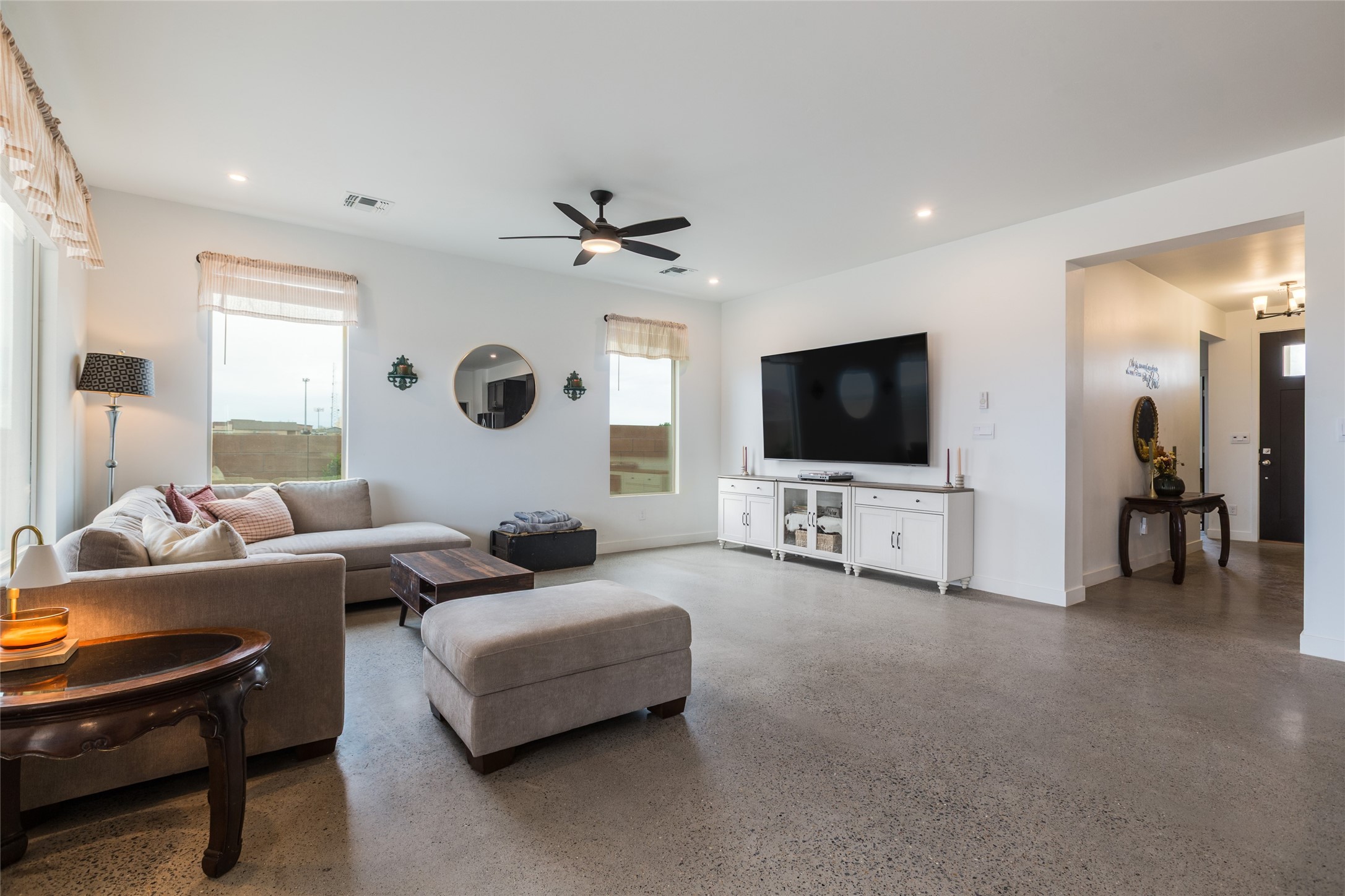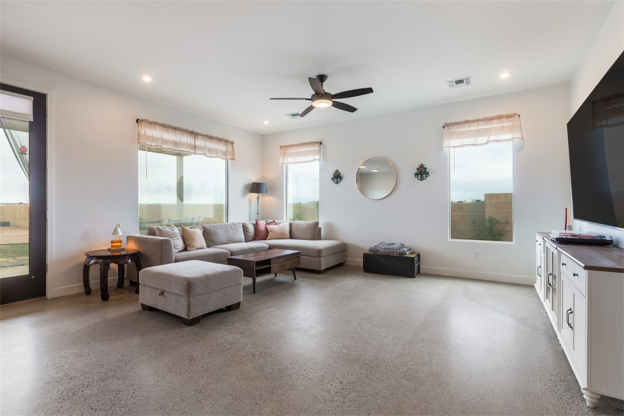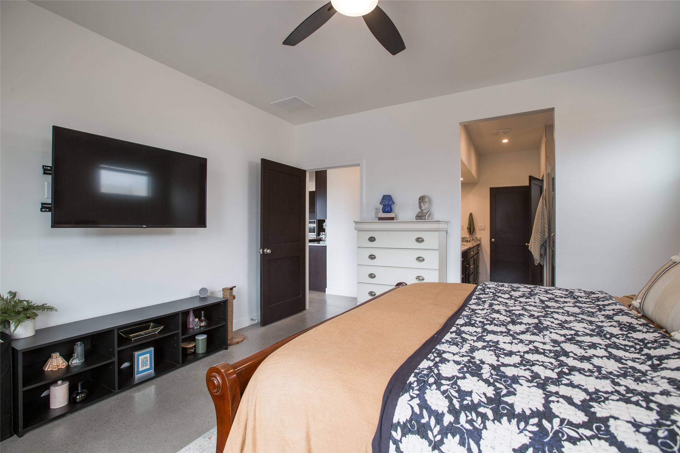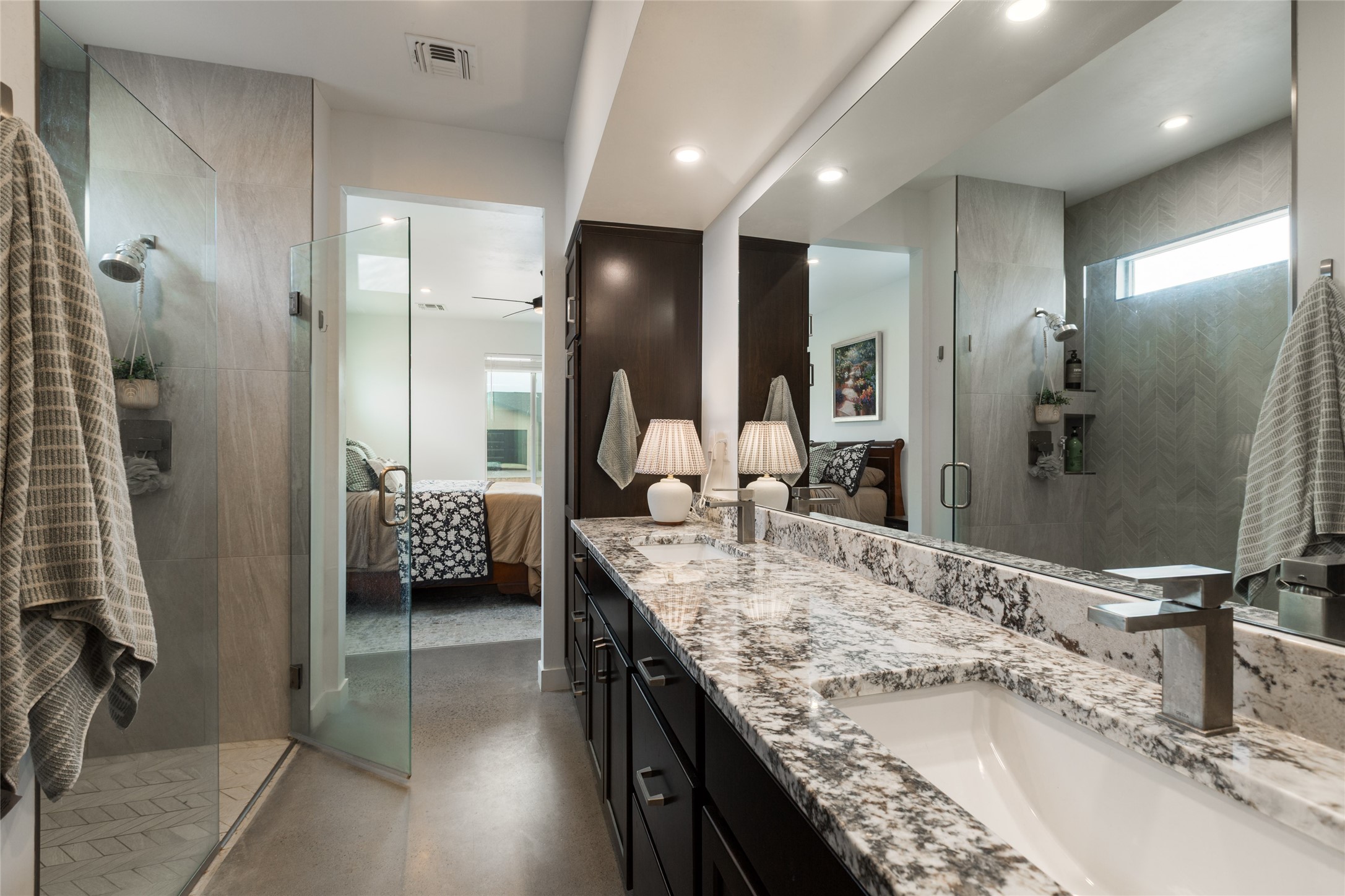 Why buy one house when you can buy two, plus have room to garage up to 8 cars on one generous acre lot with no HOA or PID? The Main Home, with a 3 car garage, was finished in late 2024, and not occupied until 2025. It offers a bright, open layout with polished concrete flooring throughout for a sleek, low-maintenance finish. The kitchen is designed for everyday living AND entertaining - with solid wood cabinetry, gas range, large pantry, and abundant storage. The primary suite is spacious and there are 3 separate additional bedrooms to customize the way you live. The Casita is brand new, never lived in, and the garage has room for 5 cars, or 3 and a workshop, gym, or just ROOM, and boasts a bathroom fit for a Primary Suite! Designed and built for the current owners, a life change means you will get to enjoy all the many features they incorporated! This is the multi-gen Accessory Dwelling Unit (ADU) all your family member's friends will be jealous of, or your guests may never want to leave! It offers its own private living experience with 1 bedroom and 2 baths, a thoughtfully designed kitchen with Black Mist Honed Granite on a large island, a pot filler, beautiful tile backsplash, generous cabinetry, and the option for gas or electric range and dryer. The inviting living space features a fireplace with blower for extra warmth and ambiance. Additional casita highlights include a covered front porch, insulated garage doors, security cameras, a full gutter system, gas BBQ stub out, and RV hookup (including sanitary dump set up), all adding as much comfort as functionality in a truly one-of-a-kind compound in which to live, love work and play!