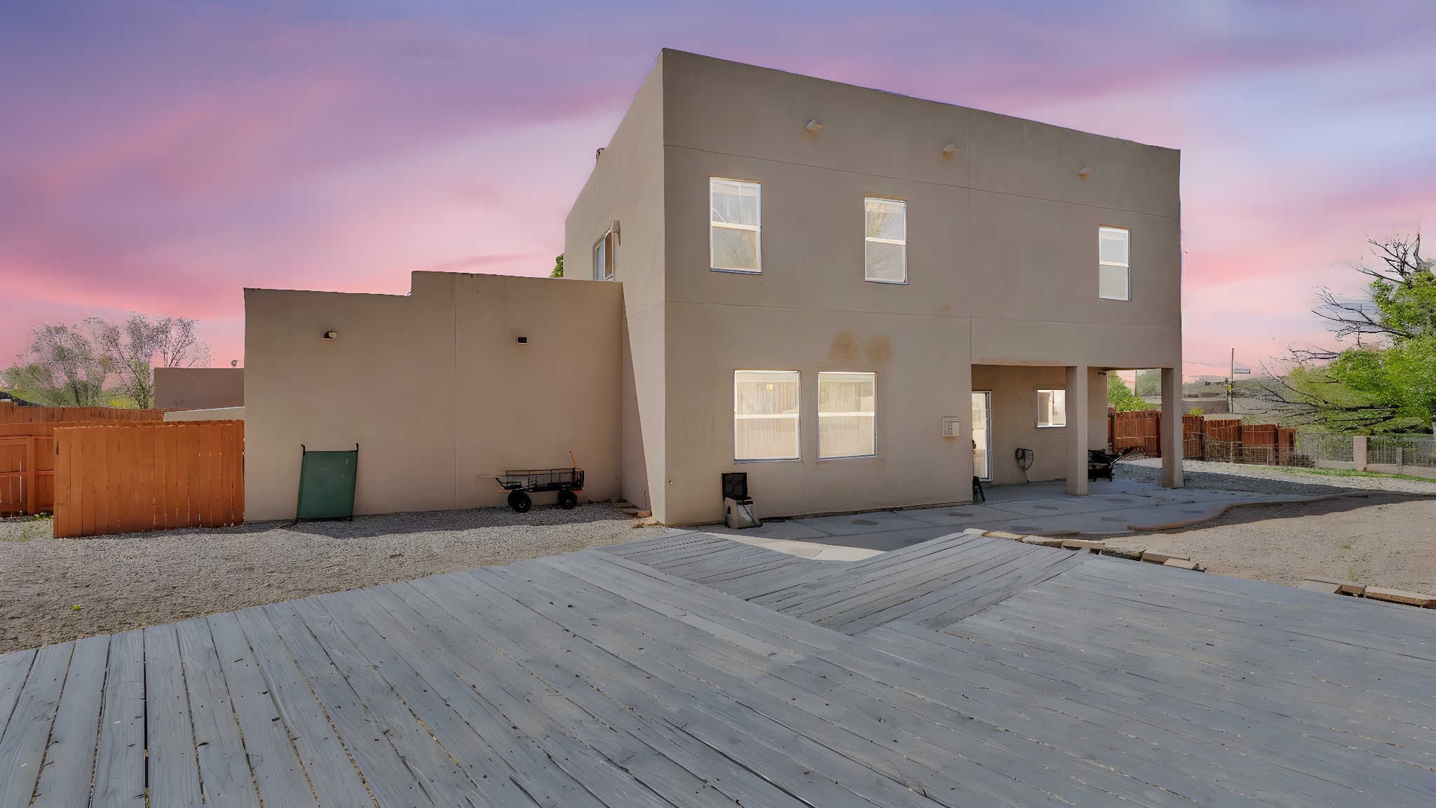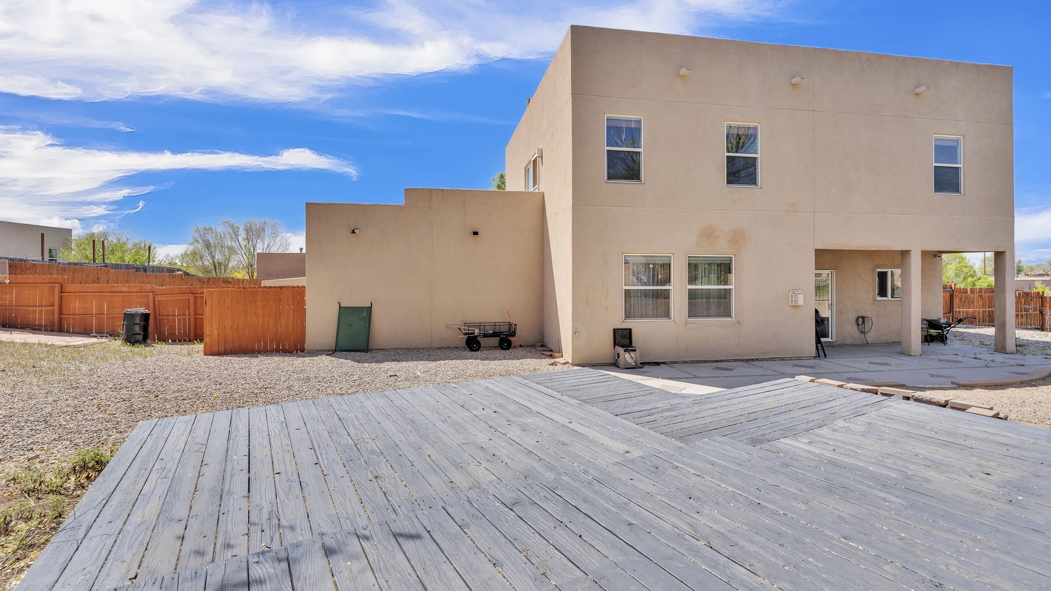 This stunning home offers breathtaking views in every direction. The property features a spacious deck, perfect for relaxing in the sun with a glass of iced tea. A charming portal extends from the gourmet kitchen and provides an ideal space for al fresco dining.The flexible floor plan allows for two office spaces or the option of a downstairs bedroom. The expansive yard includes multiple areas designed for enjoying the remarkable Santa Fe sunsets on peaceful evenings.