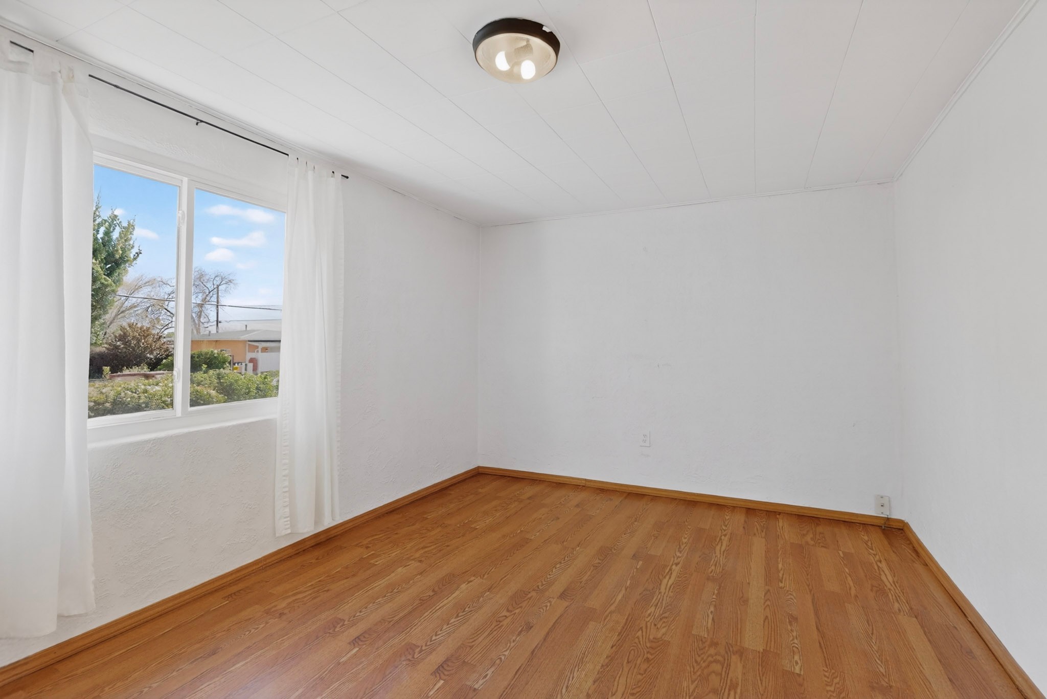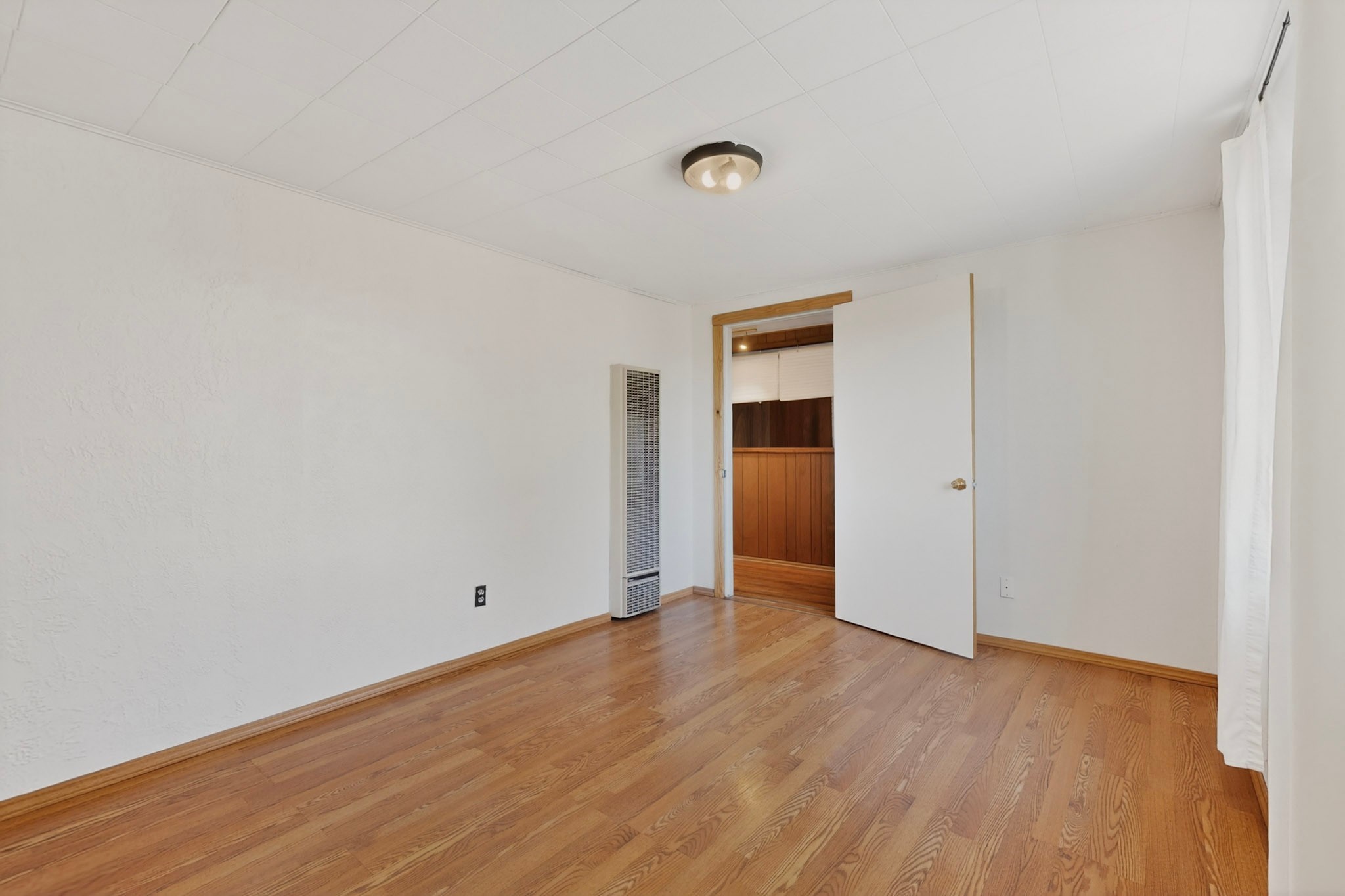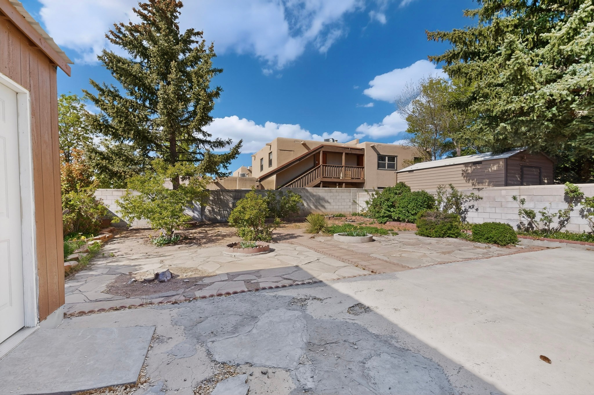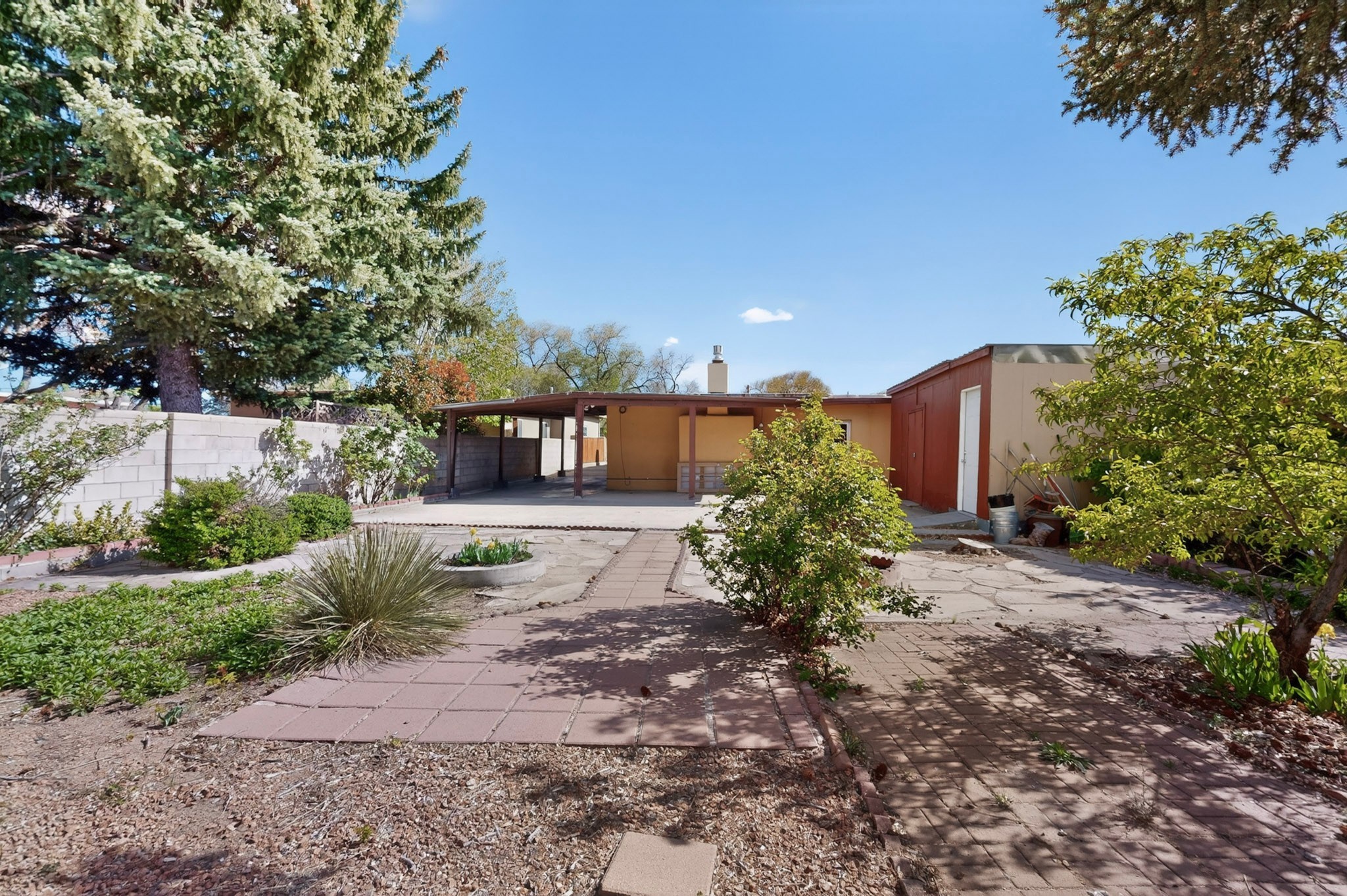 Rare opportunity to own a solid in-town adobe home in an established Santa Fe neighborhood on Columbia Street near St. Francis. This home offers 3 bedrooms and 2 bathrooms, combining classic charm and flexible living spaces. The home features beautiful hardwood floors, updated 200-amp electrical service, and laundry hook-ups for a gas dryer. A spacious addition with bath can serve as a primary suite, guest suite, family room or art studio. Set on a generous lot, the property includes fully fenced front and back yards, with mature landscaping including lilacs, roses and drought resistant spiraea bushes. The backyard offers a covered area perfect for entertaining and outside dining. There is also a detached workshop/garden shed ready for electrical upgrade, along with an additional storage unit. The neighborhood is welcoming, with long-term residents and a strong sense of community. Walk to Trader Joe's, Clafoutis, Salvador Perez Park and nearby medical, dental and veterinarian offices from this central location. This is a clean, solid, adobe home with timeless character and exceptional potential in a highly desirable in-town setting.