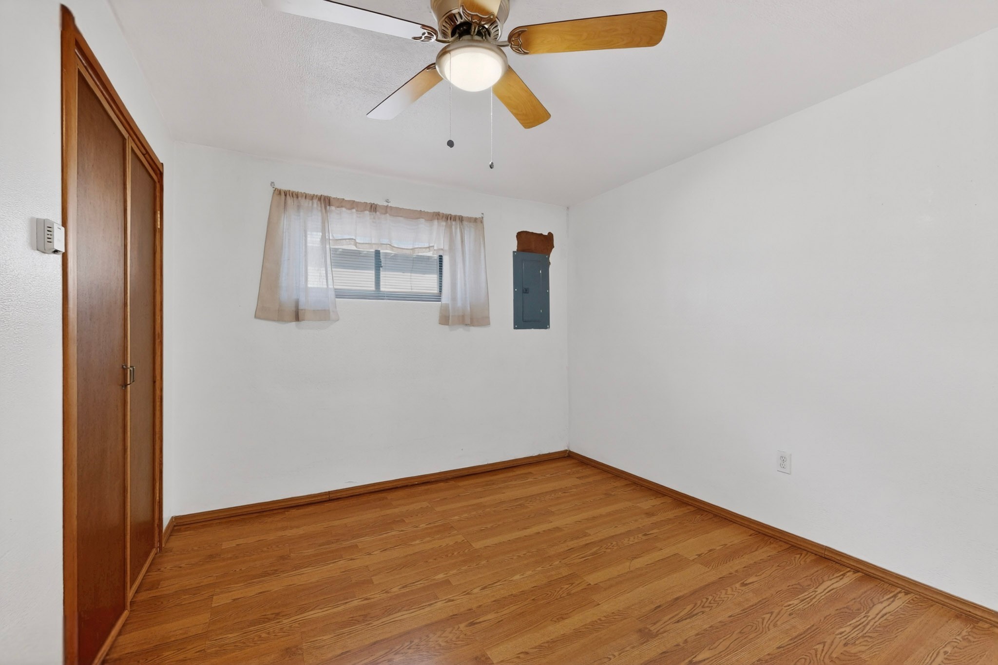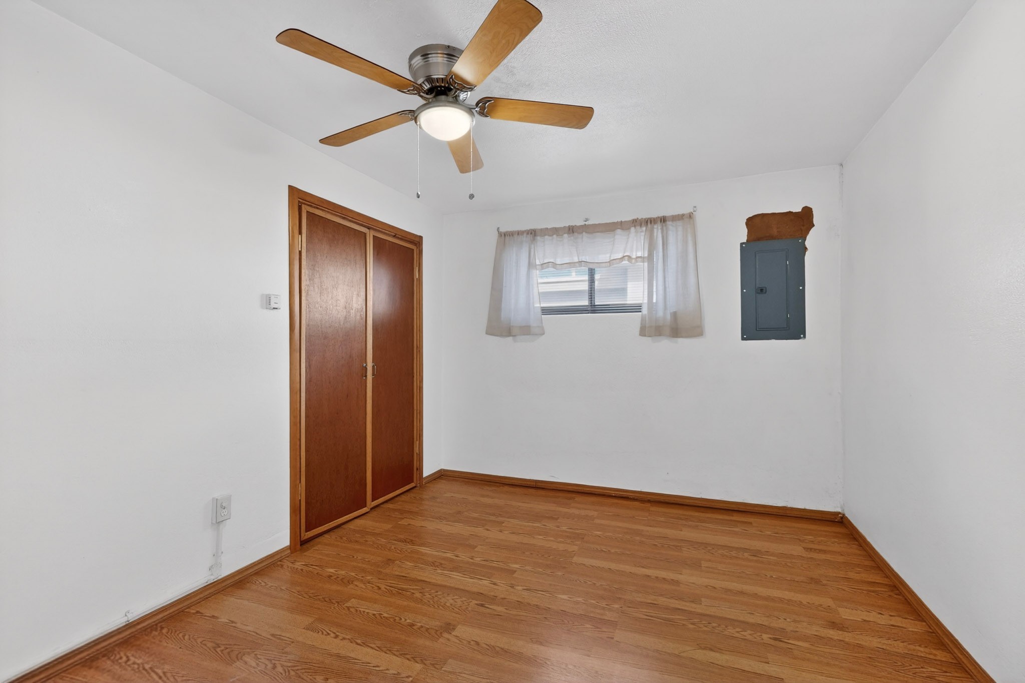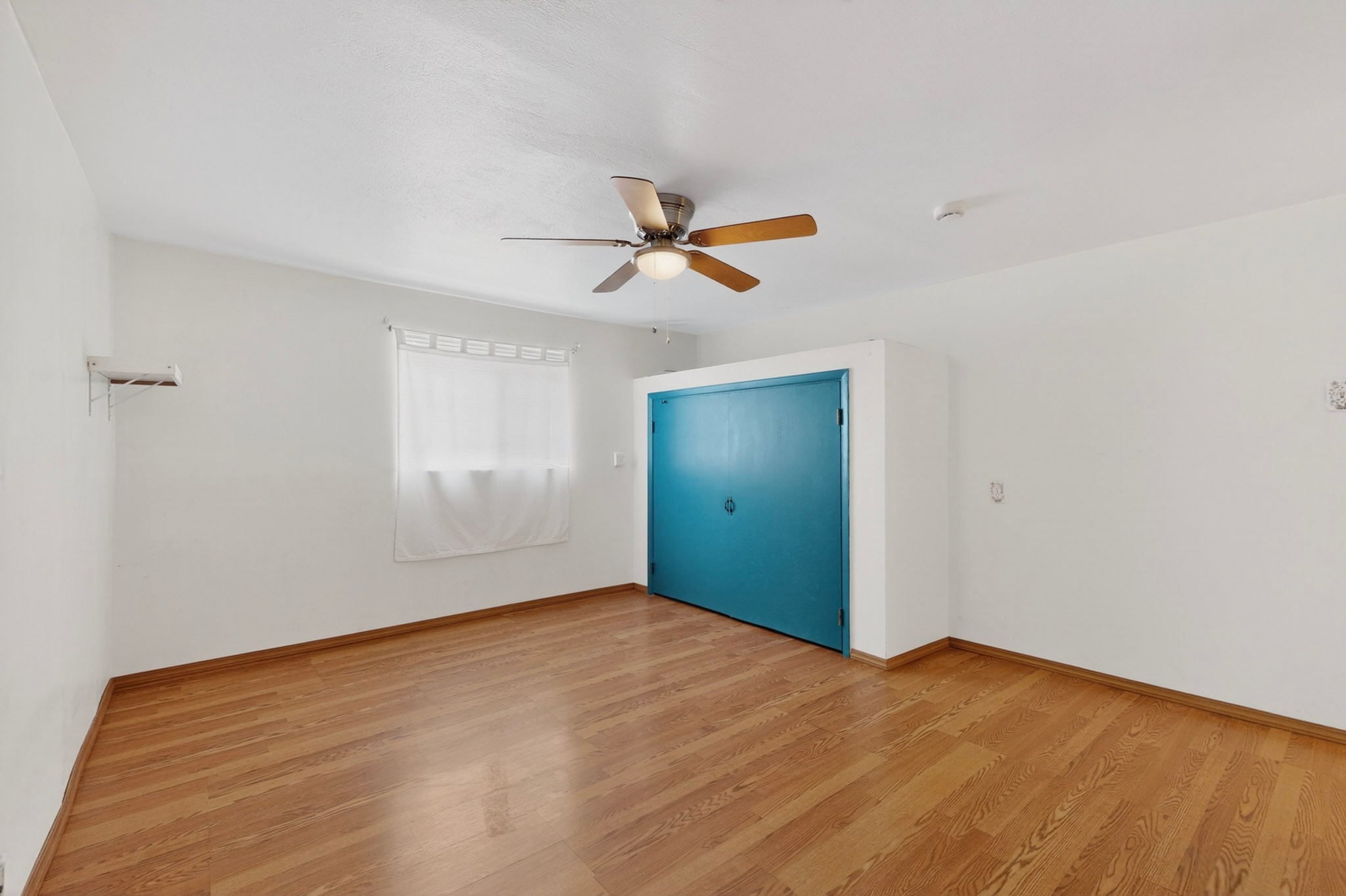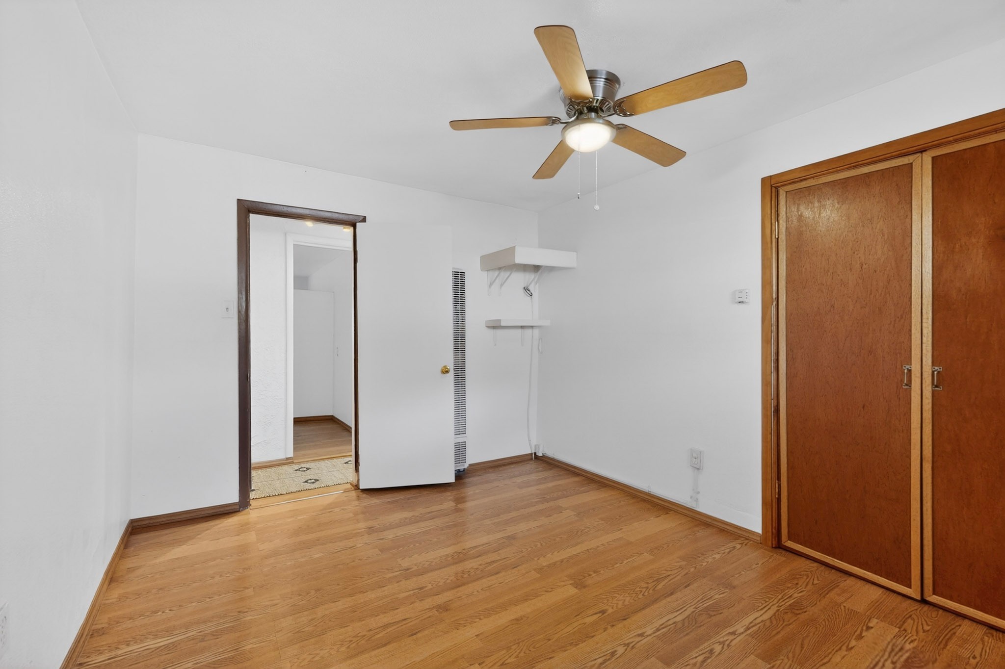 Rare opportunity to own a solid in-town adobe home in an established Santa Fe neighborhood on Columbia Street near St. Francis. This home offers 3 bedrooms and 2 bathrooms, combining classic charm and flexible living spaces. The home features beautiful hardwood floors, updated 200-amp electrical service, and laundry hook-ups for a gas dryer. A spacious addition with bath can serve as a primary suite, guest suite, family room or art studio. Set on a generous lot, the property includes fully fenced front and back yards, with mature landscaping including lilacs, roses and drought resistant spiraea bushes. The backyard offers a covered area perfect for entertaining and outside dining. There is also a detached workshop/garden shed ready for electrical upgrade, along with an additional storage unit. The neighborhood is welcoming, with long-term residents and a strong sense of community. Walk to Trader Joe's, Clafoutis, Salvador Perez Park and nearby medical, dental and veterinarian offices from this central location. This is a clean, solid, adobe home with timeless character and exceptional potential in a highly desirable in-town setting.