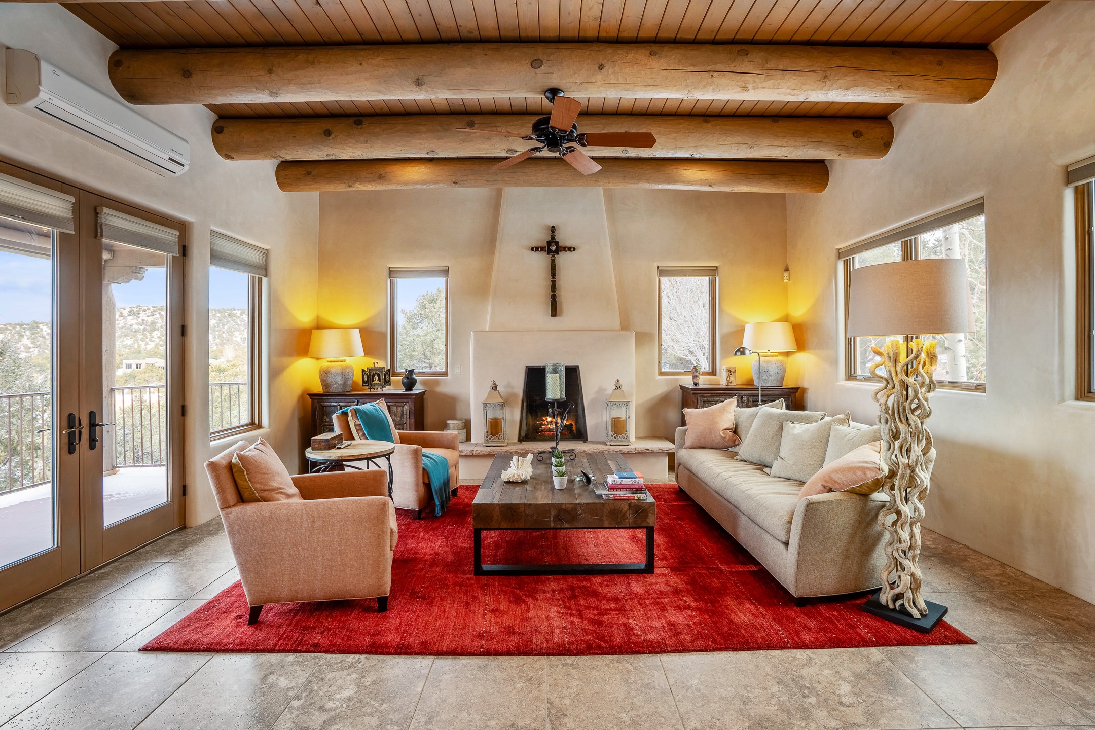 The Northeast of Santa Fe, within city limits, combines the pleasures of quiet living with the conveniences of location. On every tree-lined street are examples of newer, award-winning architecture and well-established, older adobes. In addition to the famous Plaza, this area includes all the land reaching up to the Jemez and the Sandias. Newer developments appear on your left and right as you climb in altitude into the tree-studded Sangre de Christos. Historically this area was for many years the center of life in Santa Fe. On one side of the Plaza stretches the Palace of the Governors. Constructed in the early 17th century as Spain’s seat of government, the Palace of the Governors in Santa Fe chronicles and documents the history of the city, as well as New Mexico and the region. Stroll down East Palace Avenue past galleries, shops and lovely hotels.