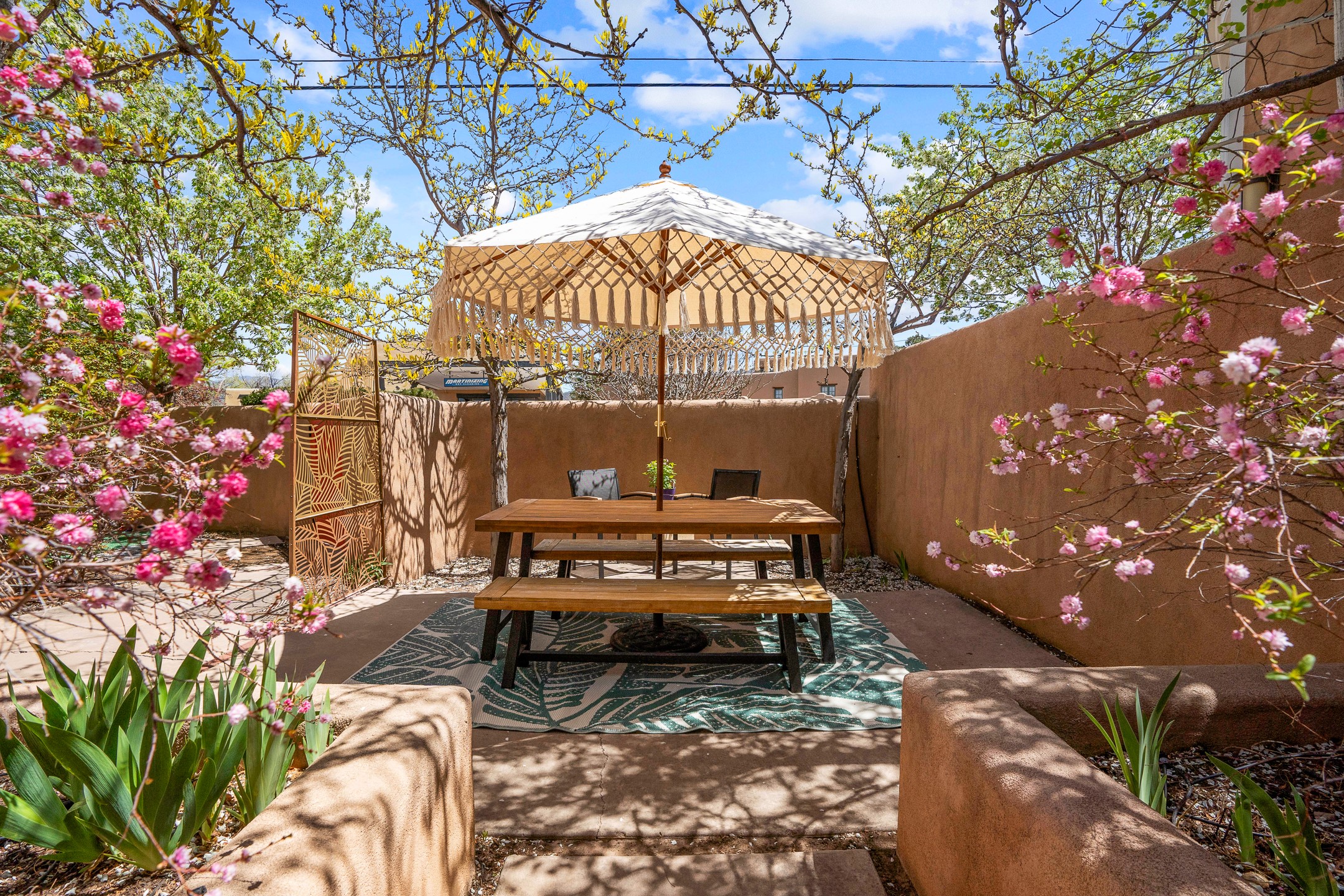Bordered on the east by the ancient Santuario de Guadalupe, the end of the Camino Real, and in the west by St. Francis Drive, this little neighborhood is a collection of beautifully-renovated adobes and up-and-comers. The lots are small and tidy. Short walking distance from the Plaza, the Rail Runner train station, shops and a quaint movie theater.